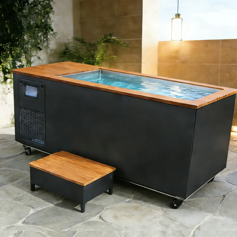 MEGA Cold plunge chiller tub Experience unparalleled water temperature control with our premium 1HP/2.0 HP ice making chiller for ice bath . Ice bath chiller cold plunge chiller model boasts a robust motor for powerful and efficient cooling and ozone water purification. Featuring remote intelligent control, an excellent design with low noise, our system is ideal for enterprise users seeking seamless 24/7 operation, a custom chiller system cooling down to 0°C. This ensures optimal performance while reducing operational costs.